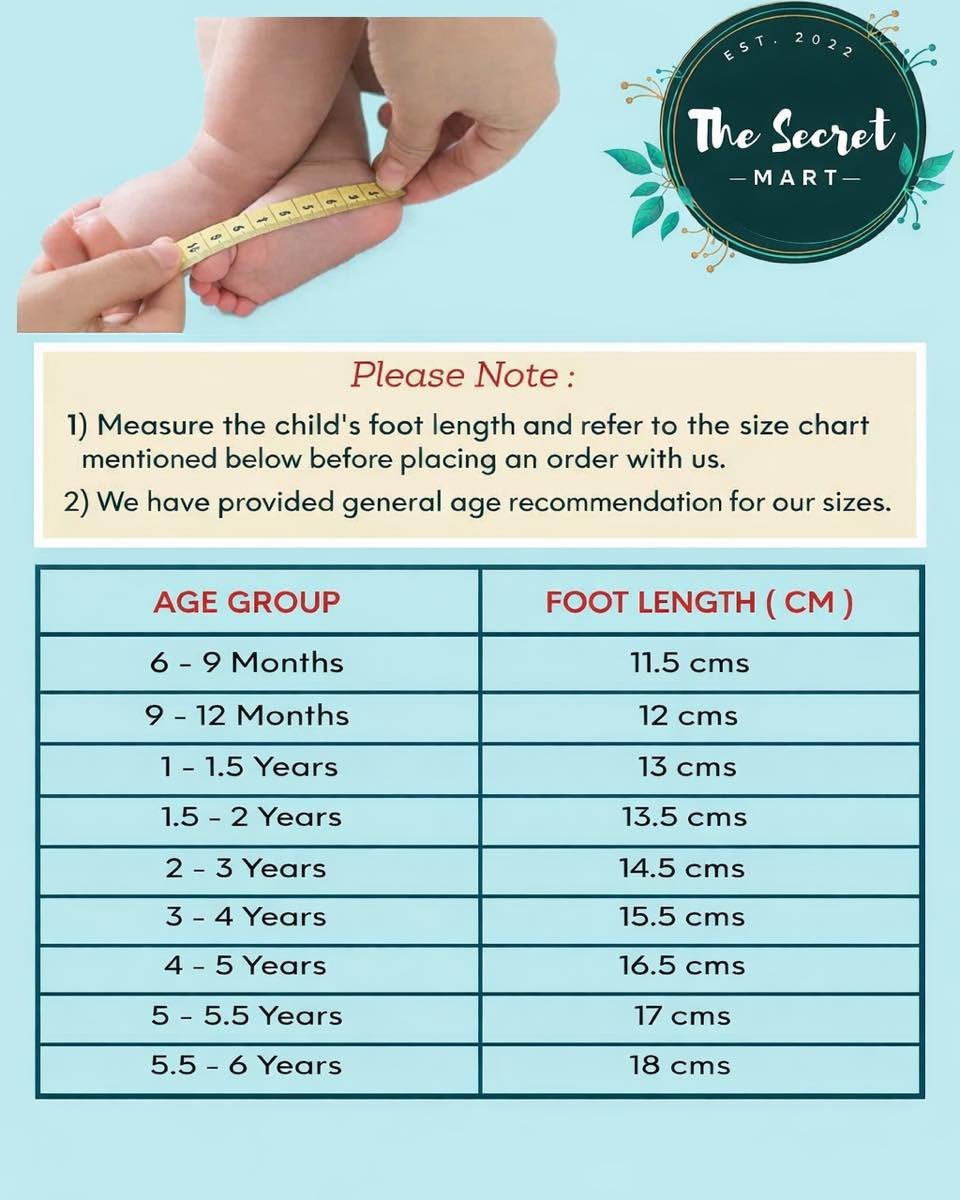 সহজ ধারণার জন্য বয়সভিত্তিক একটি সাধারণ সাইজ চার্ট নিচে দেওয়া হলো, যা পায়ের দৈর্ঘ্য পরিমাপে আপনাকে সহায়তা