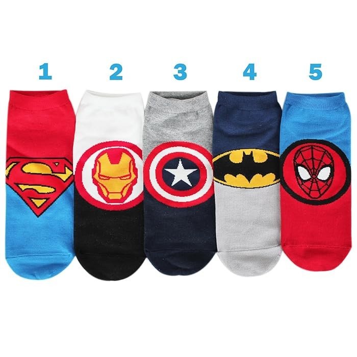 5 Pair Pack includes Superman, Batman, Iron Man, Spiderman, Captain America.